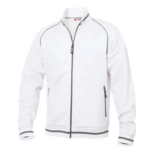 Unisex Jacke mit Strukturstrick, angerauter Innenseite, Kontraststreifen am Kragen, dem Bund und den Ärmeln, 2 Seitentaschen mit Reissverschluss in Kontrastfarbe