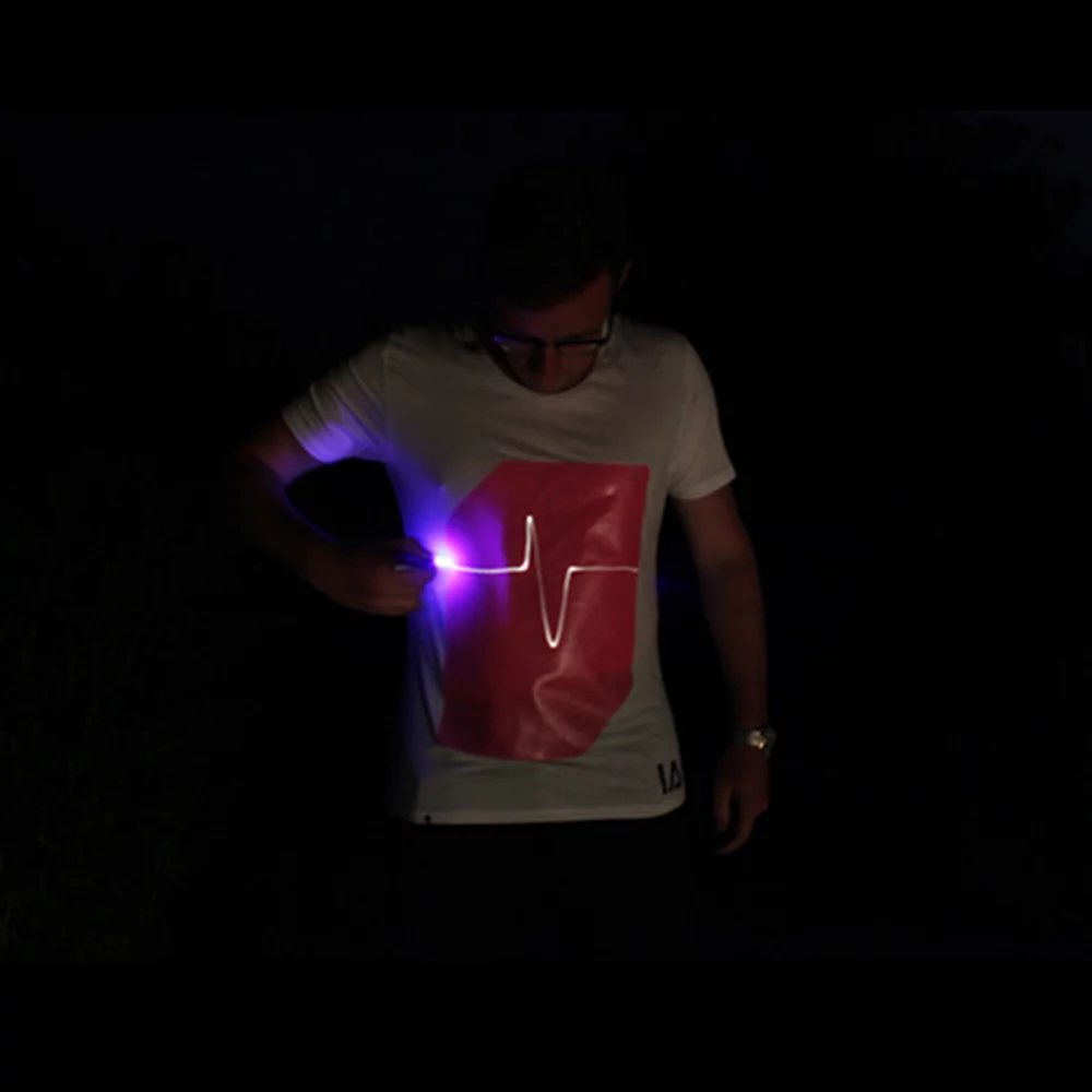 T-Shirts mit einem Leuchtaufdruck welcher 10 mal stärker leuchtet als herkömmliche Leuchtfarben.