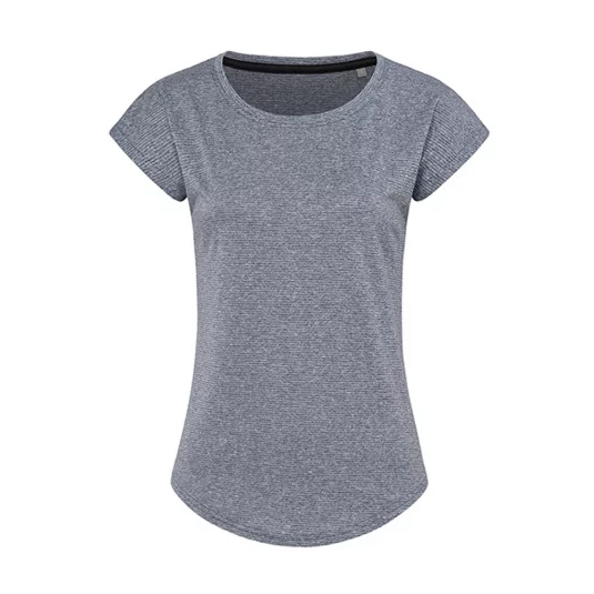 Umweltfreundliches Sport Shirt aus recyceltem Material (4 Plastikflaschen pro T-Shirt),in melierter Optik, mit Nackenband, Eigenmaterial-Kragen, abgerundeter Saum, Seitennähte, abreissbares Pflegeetikett an der Seitennaht, waschbar bis 40 °C.