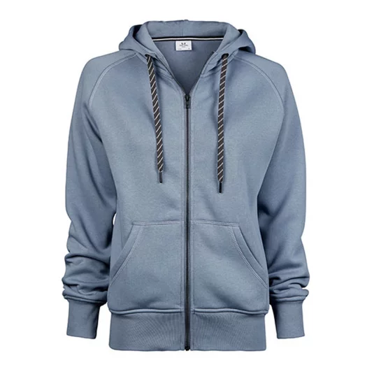 Trendige Sweat-Jacke mit Kapuze, Kordelzug in Kontrastfarbe, aufgesetzte Taschen, elastische Rippenbündchen an Ärmel und Saum, durchgehender Reissverschluss vorne, Doppelnähte