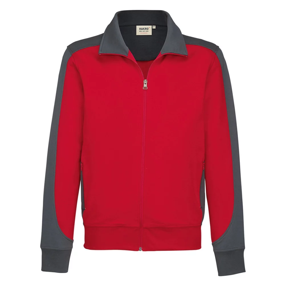 Besonders strapazierfähige Sweatjacke mit kontrastfarbigen Einsätzen an den Seiten, den Schultern und Ärmeln, formstabilen Bündchen mit Lycra-Anteil, nicht angerauhter Innenseite, (French-Terry), Nackenband, hochwertigem Frontreissverschluss und seitlichen Einschubtaschen mit Reissverschluss.