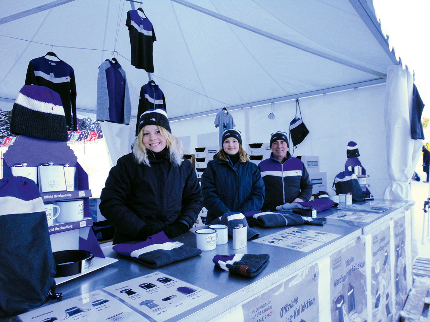 Nicht verwunderlich, wollten die Organisatoren den legendären Rennen in diesem Jahr auch eine zeitgemässe Merchandising-Kollektion widmen und traten in diesem Zusammenhang auf Pandinavia zu. «Eine supercoole Herausforderung, für den schweizweit einzigartigen Traditionsanlass eine passende Kollektion zu entwickeln», sagt Reto Lauper, Projektverantwortlicher bei Pandinavia. «Jedes Merchandising-Projekt ist anders, jede Kollektion muss spezifisch auf den jeweiligen Anlass abgestimmt werden», ergänzt Sue Spiess, Leiterin der Textilen-Abteilung von Pandinavia und kreativer Kopf der Operation «Lauberhorn Collection». «Nur so ist gewährleistet, dass die Kollektion ankommt und nicht als Dutzendware wahrgenommen wird. Bei der Kreation der Artikel war es uns deshalb wichtig, die Bedürfnisse der Skifans abzubilden und auch den lokalen Bezug der Artikel zum Anlass auszudrücken. So haben wir die Grundfarben der Textilien den Farben des Wengern-Wappens angepasst und sie mit modisch aktuellen Kontrasten ergänzt», so Spiess. Sie und Projektleiter Lauper liessen sich trotz Temperaturen bis zu beissenden minus 14° C nicht davon abhalten, zusammen mit dem Projektteam die eigene Kollektion auf der Wengeneralp (1874 m) im Verkaufszelt an die Fans zu verkaufen. Im Dorf selber wurde mangels Platz kurzerhand eine leerstehende Bäckerei zum Merchandising Store umfunktioniert, was bei langjährigen Fans für Verblüffung sorgte. Anstelle der traditionellen Berliner gabs trendige Beanie-Caps und coole Shirts und Jacken! Am Ende waren alle froh: die Fans, bei denen die Kollektion super ankam und die nun zum ersten Mal hochwertige Souvenirs von ihrem Lieblingsanlass mit nach Hause nehmen konnten, das OK, dessen Anliegen es war, einen professionellen Merchandising-Partner gefunden zu haben, und das Pandinavia Team, das sich über einen beträchtlichen Umsatz freute und zwar total durchfroren, aber glücklich den Nachhauseweg antreten durfte. Die Partnerschaft mit den Lauberhornrennen, die im nächsten Jahr ihr 90-jähriges Bestehen feiern, läuft über drei Jahre und das Projektteam ist voller Ideen für die kommende Kollektion.