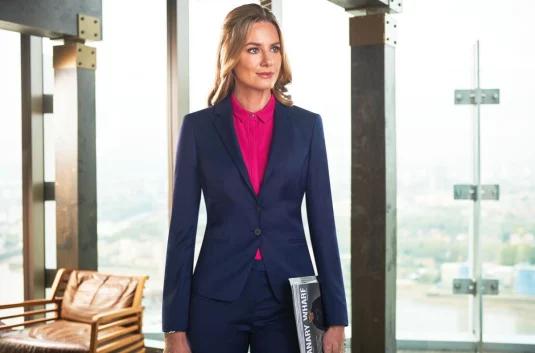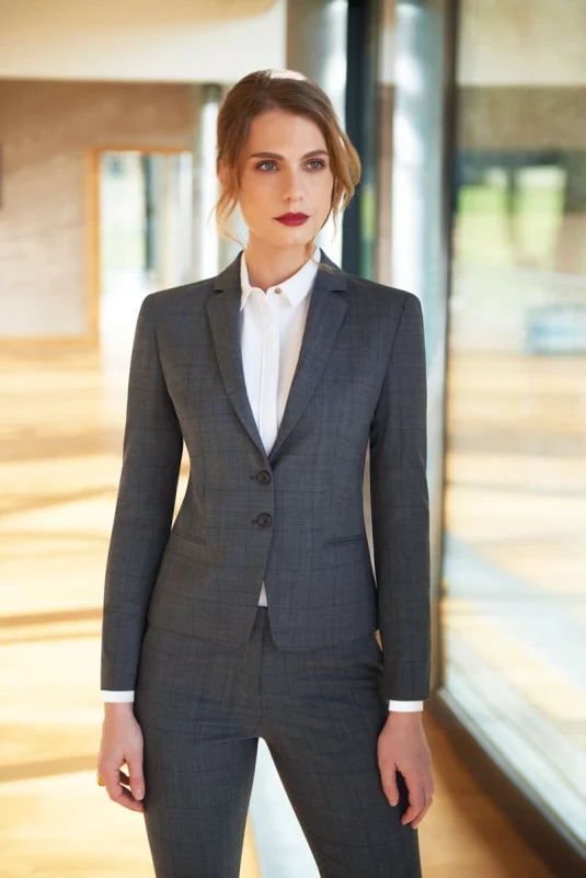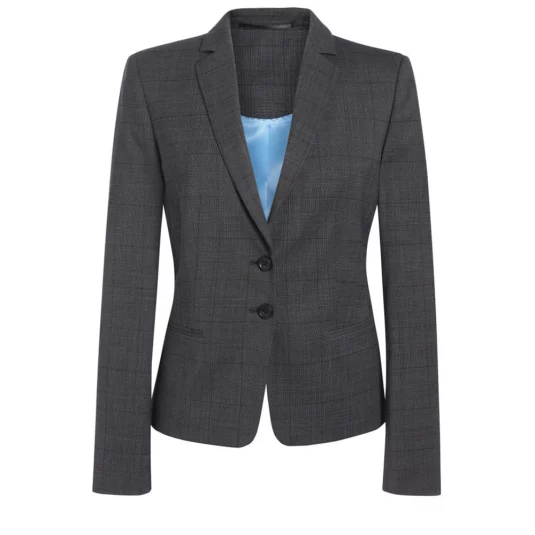 Kurzer, slim fit 2-Knopf Blazer, schmales Revers, Brustabnäher, eingeschnittene Paspeltaschen, modisch Rücken, 1 Innentasche Rückenlange bei Gr.