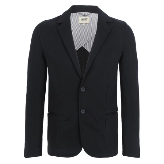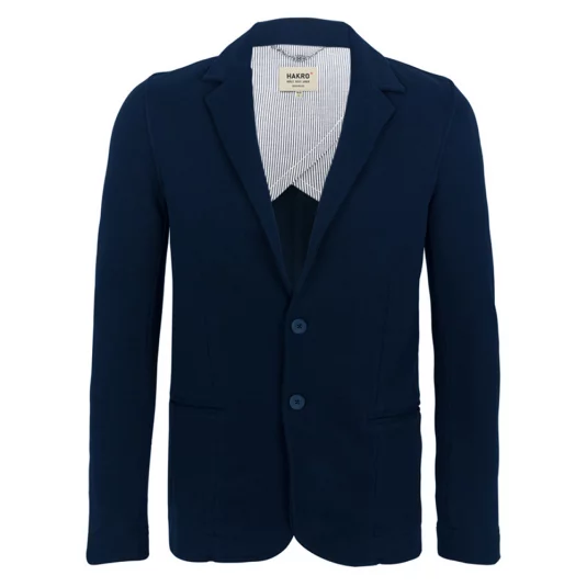 Modisch geschnittener Herren Sweatblazer mit blau-weiss gestreiftem Teilfutter aus Jersey im Rücken.