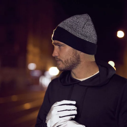 Strickmütze mit Umschlag und reflektierendem Faden.