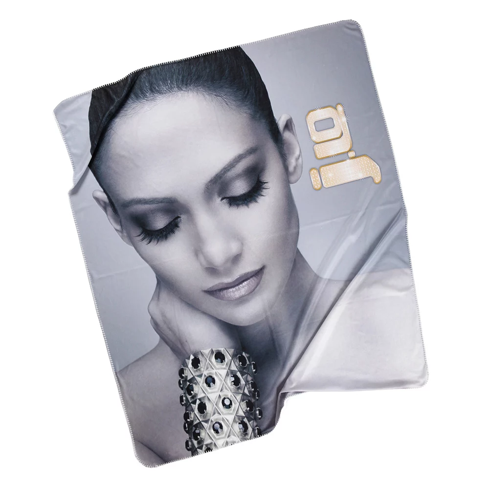 Flauschige Fleece-Decke, mit vollflächigem Digitaldruck in Ihrem Wunschdesign auf der Oberseite, die Unterseite bleibt weiss, die Kanten sind mit Garn umrandet.