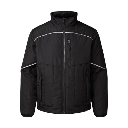 Steppjacke aus strapazierfähigem Ripstop-Gewebe mit wattiertem Fleece-Futter und reflektierenden Paspeln.