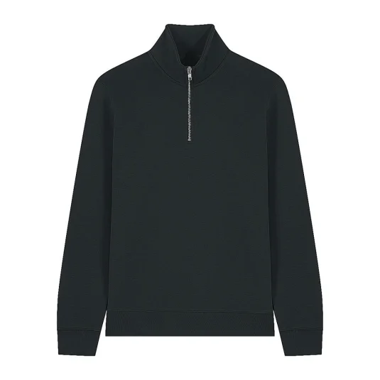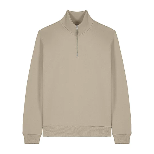 Sweatshirt mit Mock-Neck-Kragen und Quartal-Reissverschluss, Qualität: 85% Bio-Baumwolle, 15% recyceltes Polyester, 280 g/m²