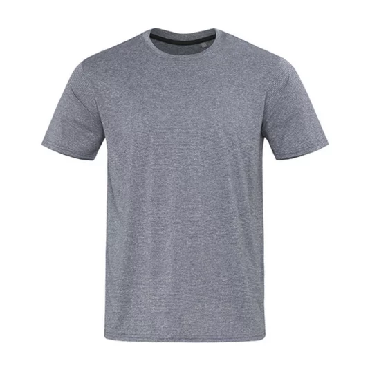 Umweltfreundliches Sport Shirt aus recyceltem Material (4 Plastikflaschen pro T-Shirt), in melierter Optik, mit Nackenband, Eigenmaterial-Kragen, abgerundeter Saum, Seitennähte, abreissbares Pflegeetikett an der Seitennaht, waschbar bis 40 °C.