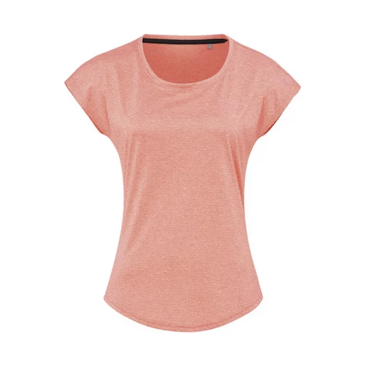 Umweltfreundliches Sport Shirt aus recyceltem Material (4 Plastikflaschen pro T-Shirt),in melierter Optik, mit Nackenband, Eigenmaterial-Kragen, abgerundeter Saum, Seitennähte, abreissbares Pflegeetikett an der Seitennaht, waschbar bis 40 °C.