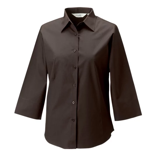 Stretch Damenbluse mit 3/4-Arm, klassischer Kragen, Abnäher am Rücken und an der Vorderseite für eine taillierte Form, geschlitzte 3/4-Ärmel, abgerundeter Bund