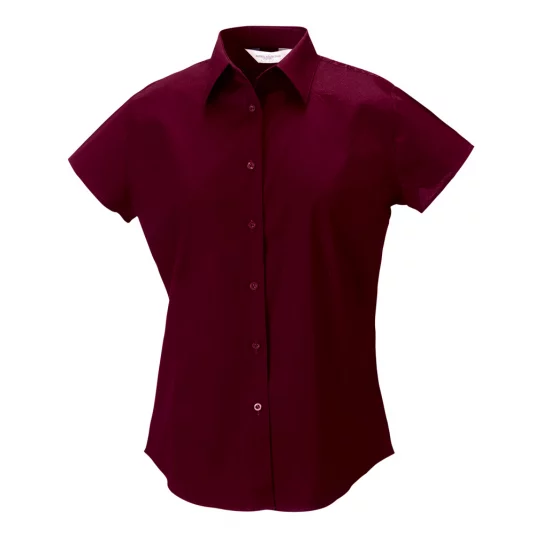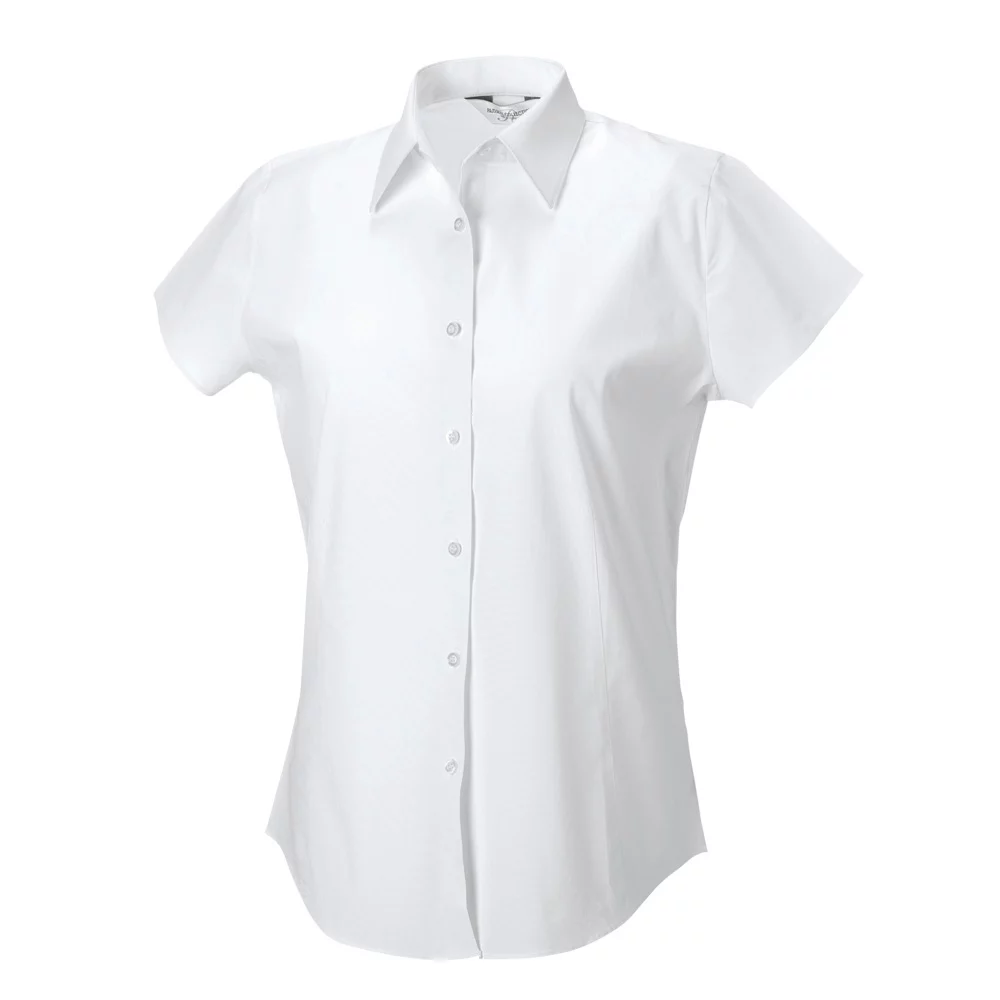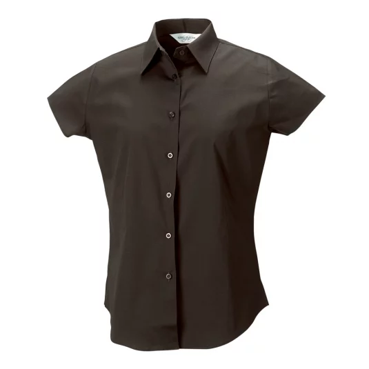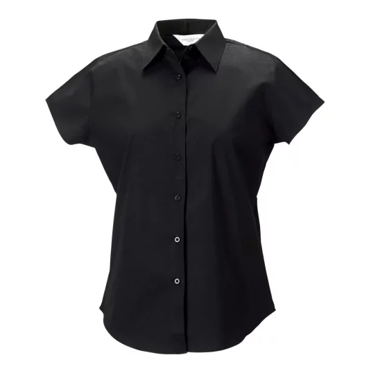 Stretch Damenbluse kurzarm, klassischer Kragen, Abnäher am Rücken und an der Vorderseite für eine taillierte Form, angeschnittene kurze Ärmel, abgerundeter Bund