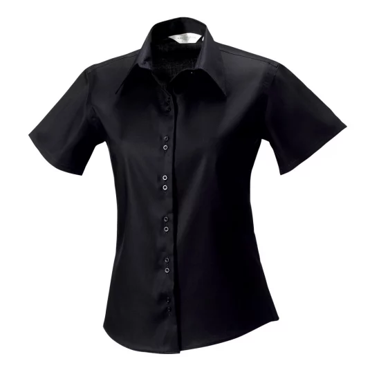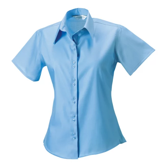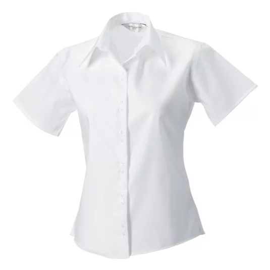 Kurzärmlige Damenbluse aus bügelfreiem Stoff, modisch geschnittener Kragen, Doppelknopf-Verschluss, tailliert