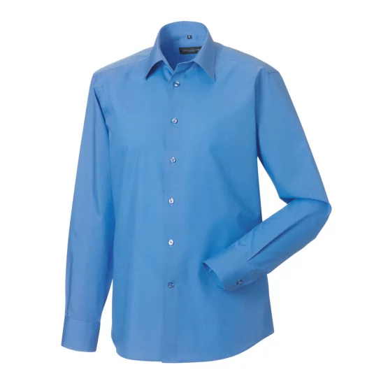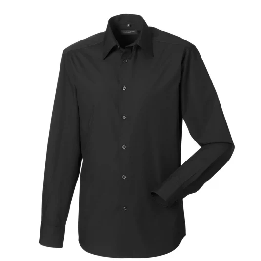 Langärmliges Herrenhemd in tailliertem Schnitt, stäbchenverstärkter Kragen, mit zwei Knöpfen verstellbare Manschette, abgerundeter Saum