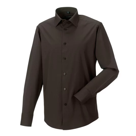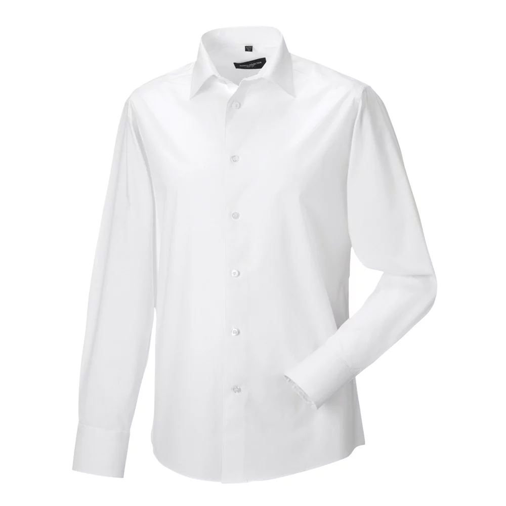 Langärmliges Herrenhemd, halb ausgestellter Kragen, Manschetten mit 2 Knöpfen, abgerundeter Bund