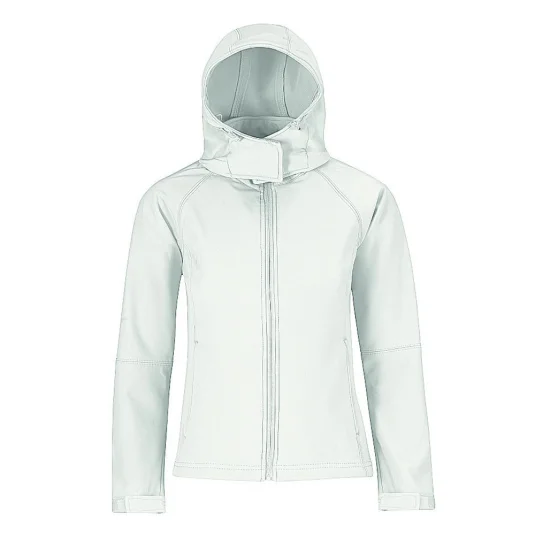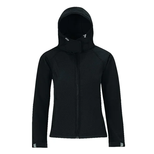 Atmungsaktive High Performance Softshell-Jacke, wasser- und winddicht, mit wärmendem Microfaserfutter auf der Innenseite, abnehmbarer Kapuze, Kinnschutz, zwei Fronttaschen mit Reissverschluss, einer Brusttasche sowie Klettverschluss an den Ärmeln