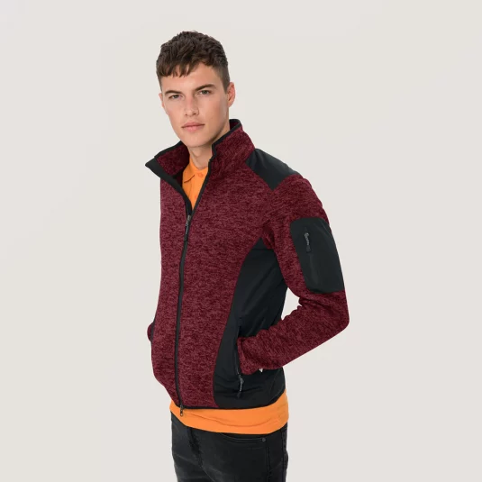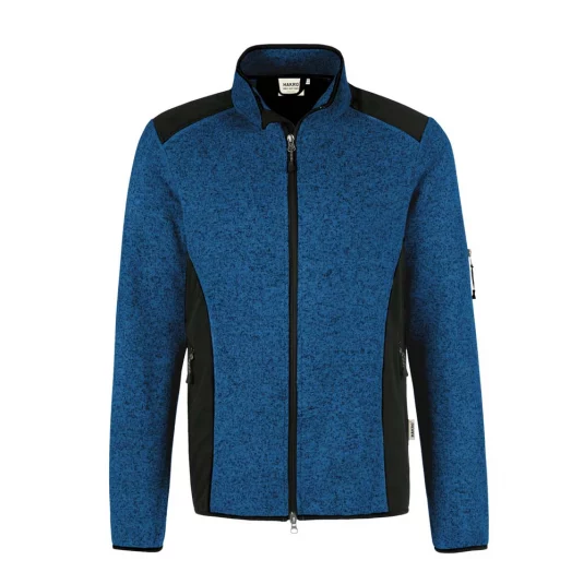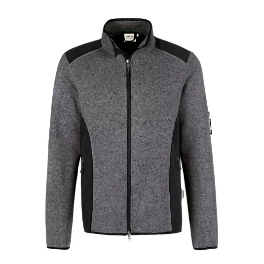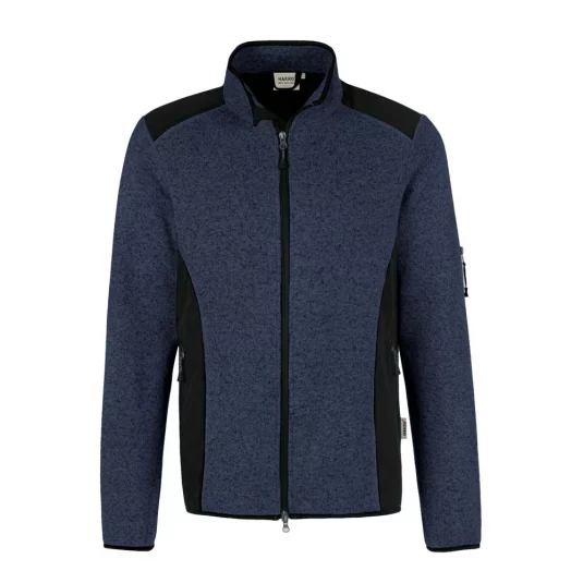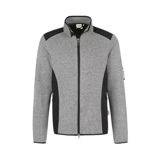Sportliche Strickfleecejacke mit kontrastfarbigen Einsätzen an den Seiten und Schultern, Teilungsnähten auf Vorder- und Rückenteil für perfekte Passform, hochwertigem, kontrastfarbigem 2-Wege-Frontreissverschluss, seitlichen Reissverschlusstaschen, elastischen Saum- und Ärmelbündchen, Reissverschluss-Ärmeltasche am linken Ärmel, Nackenband und Aufhängeband im Nacken.