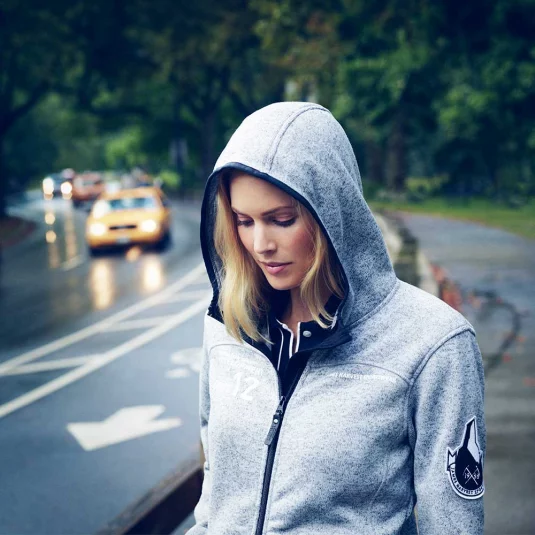 Schwere Damen-Fleecejacke mit dekorativen Ziernähten und elastischer Paspelierung.