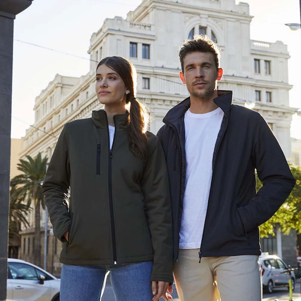 Eine modern geschnittene, wattierte Softshell Jacke.