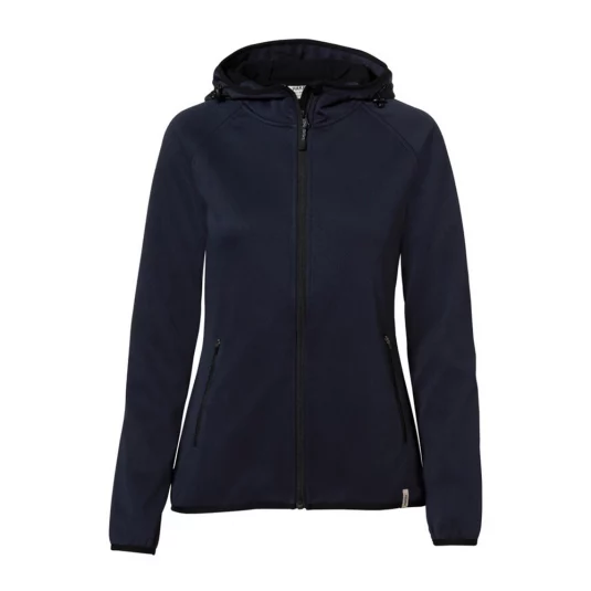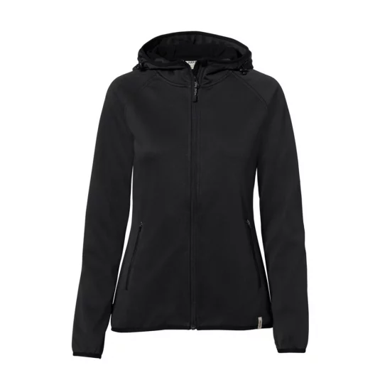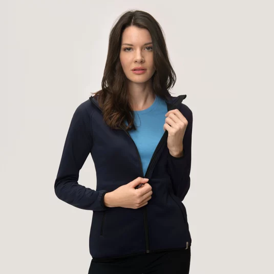 Funktionelle, atmungsaktive, sportlich geschnittene Kapuzenjacke mit Raglanärmeln, angeschnittener, weitenverstellbarer Kapuze mit Tunnelkordelzug und Stoppern, hochwertigem Frontreißverschluss mit Reißverschlussgarage und Einschubtaschen mit Click-down-Reißverschluss.