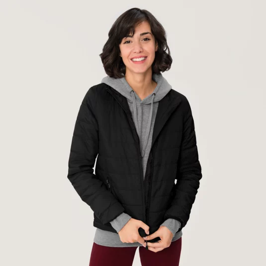 Wärmende Isolationsjacke mit elastischen Ärmelabschlüssen, hochwertigem Frontreissverschluss mit Anhängern, funktioneller Innen- und seitlichen Einschubtaschen mit Reissverschluss.