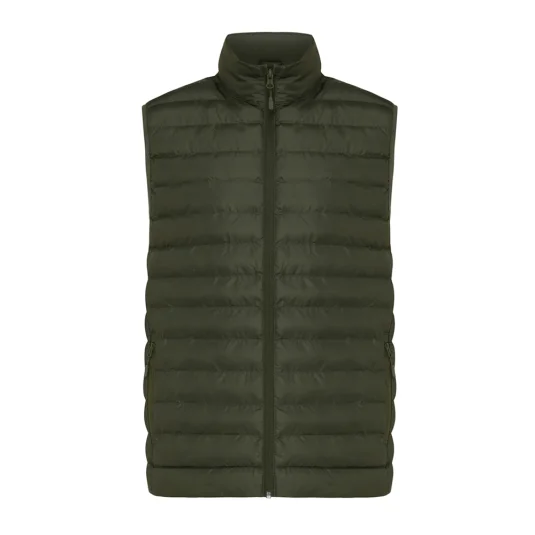 Medium-Fit Herren-Bodywarmer aus 100% recyceltem Polyester, mit Reissverschluss auf der Vorderseite und praktischen Reissverschlusstaschen in den Seitennähten, alle mit farblich abgestimmten zusätzlichen Zipper-Pullern, 70 g/m2