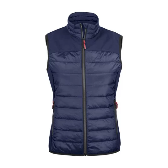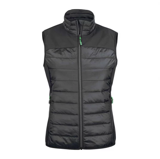 Wattiertes Gilet gesteppt und mit Sofshell Einsätzen über der Schulter und an den Seiten.