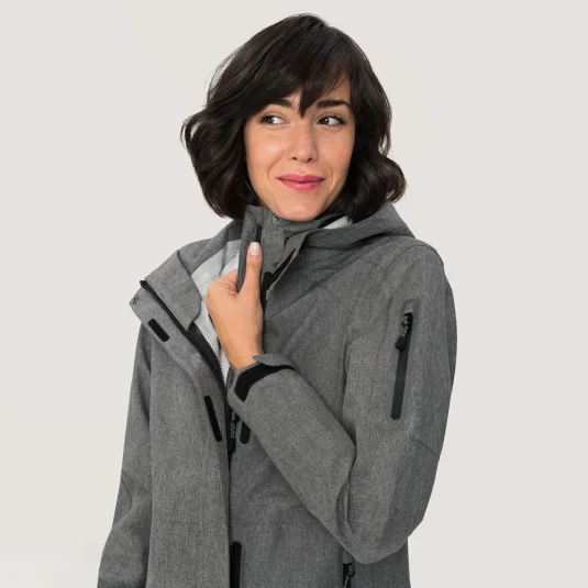 Atmungsaktive, wasser- und winddichte Kombijacke mit getapten Nähten, abnehmbarer und regulierbarer Kapuze, verlängerter Rückenteil, hochwertigem 2-Wege-Frontreissverschluss und wasserdichten Reissverschlüssen an den Taschen.