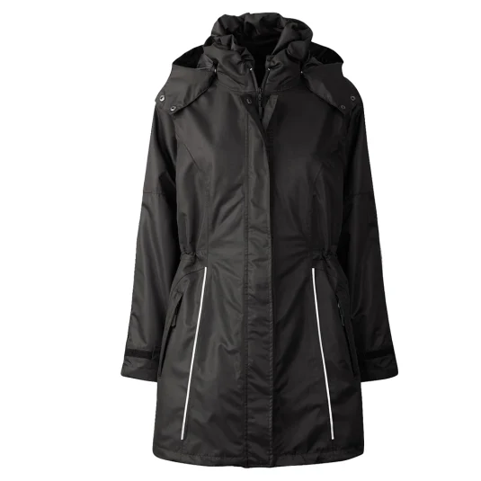 Hochwertige Laminatjacke mit BIONIC-FINISH®ECO, einer dauerhaften PFC-freien und wasserabweisenden Ausrüstung. Mit komplett getapten Nähten und abnehmbarer Kapuze. Weitenverstellung an Taille und Saum- und Ärmelabschluss und 2-Wege-Reissverschluss in der vorderen Mitte. Zwei seitliche Eingriffs- und Innentasche mit Reissverschluss. Reflektierende Paspel an Vorder- und Rückteil sowie am Ärmel sorgen für eine bessere Sichtbarkeit.