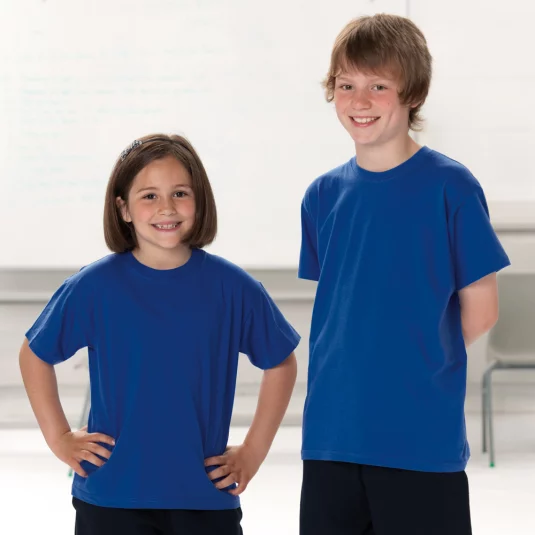 Kinder T-Shirt mit rundem Halsausschnitt, doppelte Nähte an Bund und Ärmelabschluss