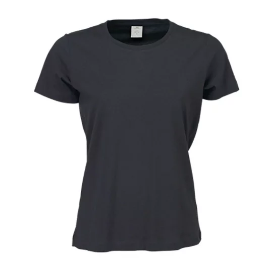 Klassisches Damen T-Shirt mit Rundhalsausschnitt, Schulter-zu-Schulter-Nackenband, 2-lagiges Halsbündchen mit Elastan, Schlauchware, vorgeschrumpft.
