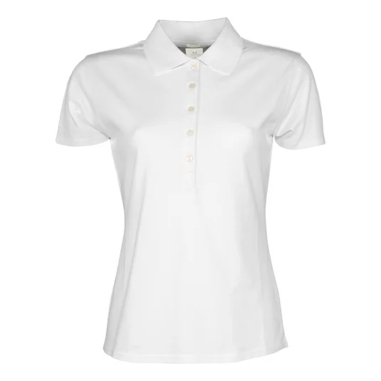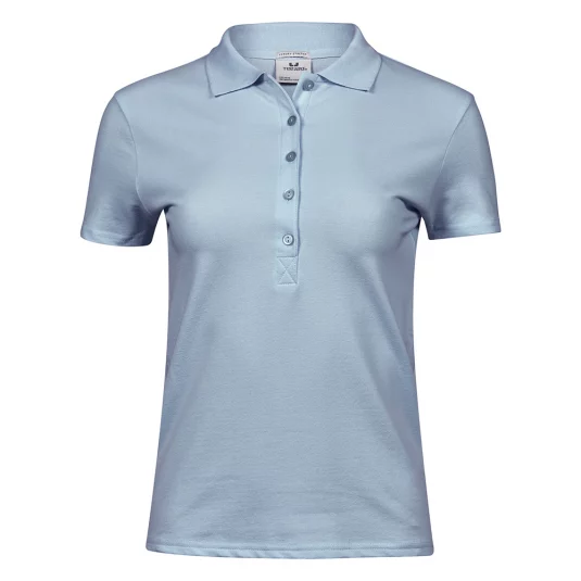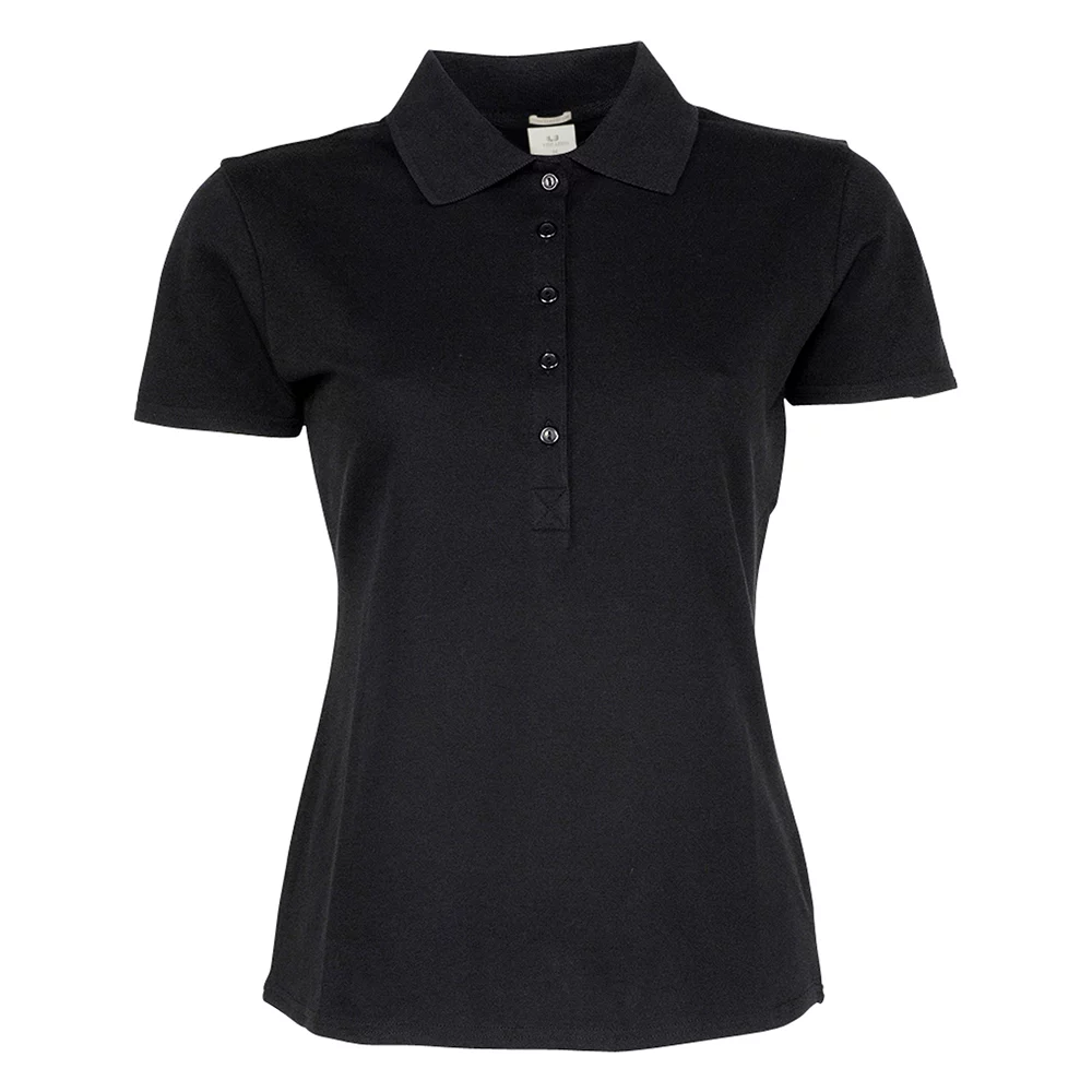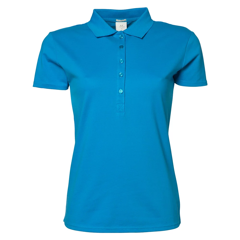 Sehr angenehm zu tragendes Poloshirt mit 3-Loch-Knopfleiste beim Herrenmodell und 5-Loch-Knopfleiste beim Damenmodell, Flachstrickkragen mit Elasthan und Nackenband.