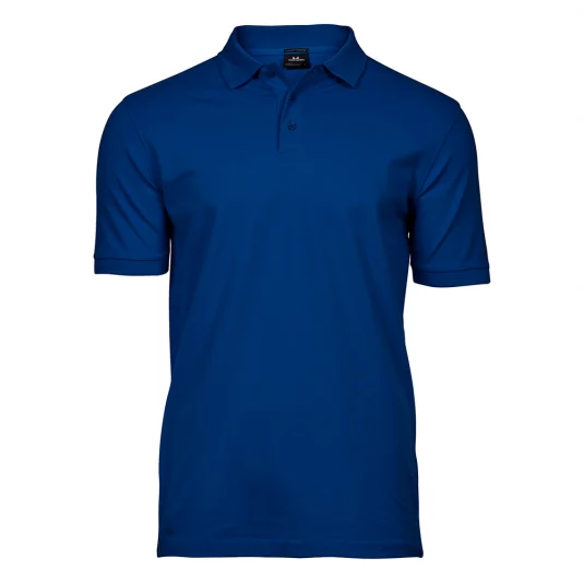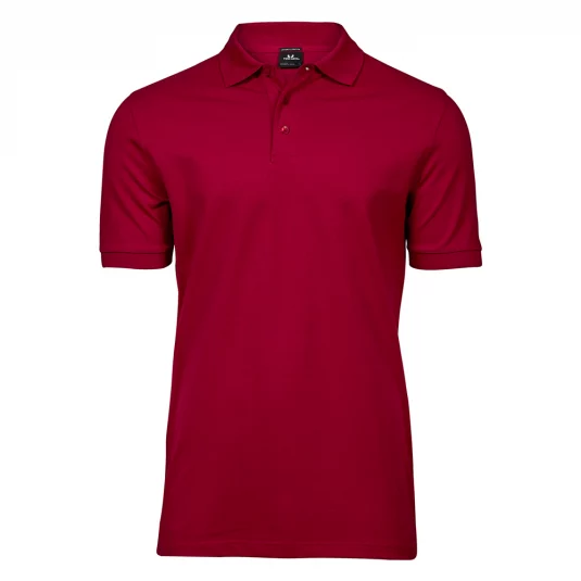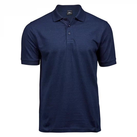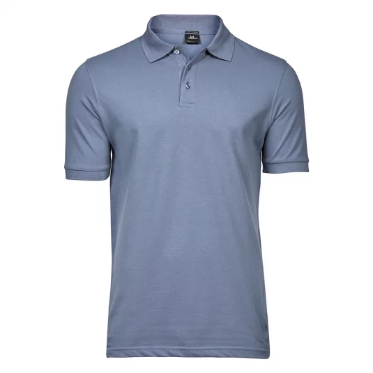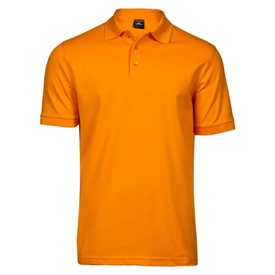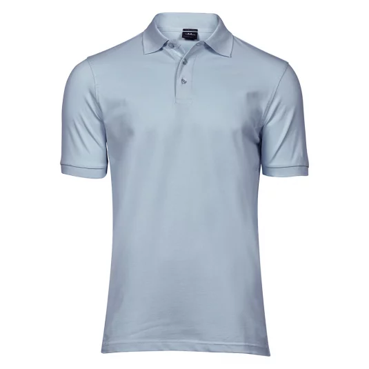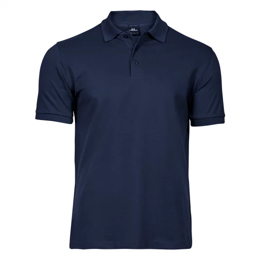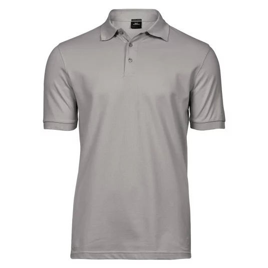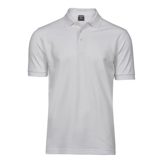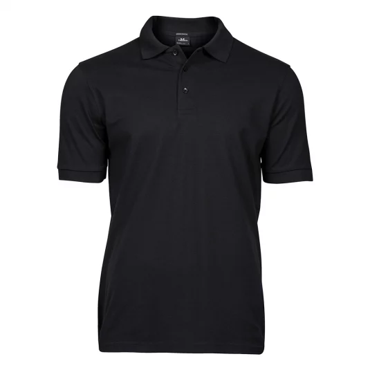 Sehr angenehm zu tragendes  Poloshirt mit 3-Loch-Knopfleiste beim Herrenmodell und 5-Loch-Knopfleiste beim Damenmodell, Flachstrickkragen mit Elasthan und Nackenband.