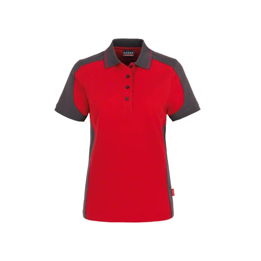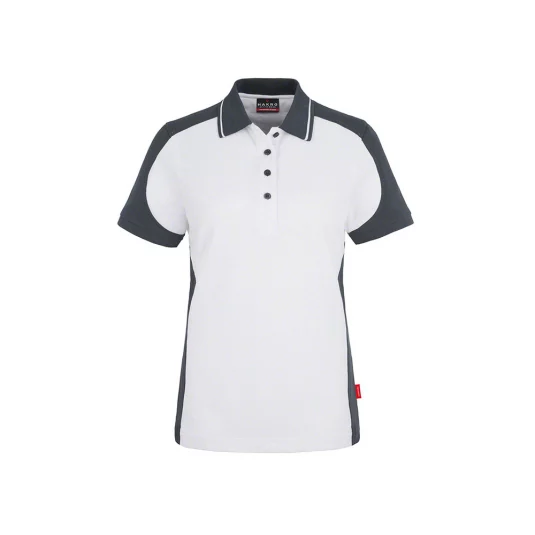 Besonders leistungsfähiges und funktionelles Piqué- Poloshirt aus weichem, durch den Polyester-Anteil besonders pflegeleichtem und strapazierfähigem HAKRO®- Performance-Materialmix mikralinar® mit kontrastfarbigen Einsätzen an den Seiten, Schultern und Ärmeln, kontrastfarbiger Polokragen mit Streifen, kontrastfarbige Ärmelbündchen und Nackenband, zusätzlich mit doppelt geriegelten Seitenschlitzen sowie einer modisch verlängerten 4-Loch-Knopfleiste ausgestattet, ein Leasingkoller zur einfachen Kennzeichnung und zwei praktische Aufhängebänder im Saum, für die problemlose Bearbeitung in der gewerblichen Wäscherei
