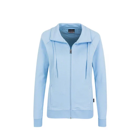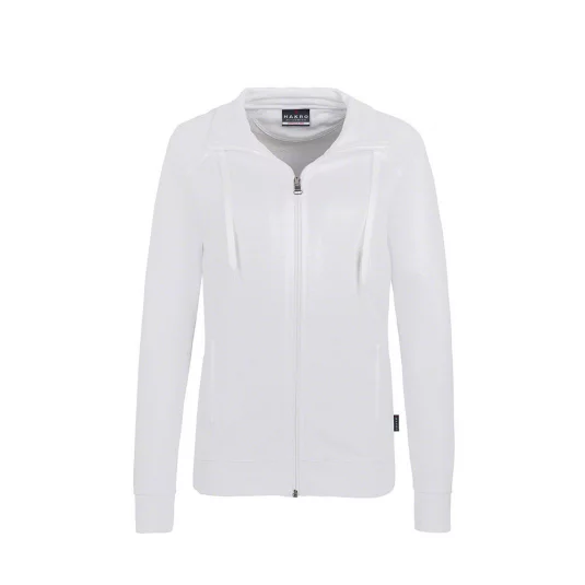 Sweatjacke im College-Stil aus pflegeleichter Baumwoll- Polyester-Mischung für höchste Ansprüche. Die Innenseite ist nicht angeraut und die modischen, formstabilen Rippstrickbündchen sind zusätzlich mit lycra® verstärkt. Bequemer Kragen mit Kordelzug und Ösen von YKK®. Sportlicher Raglan-Schnitt, Frontreißverschluss, zwei praktische Einschubtaschen mit Reißverschlüssen von YKK®, dekorative Flatlock-Nähte und Nackenband