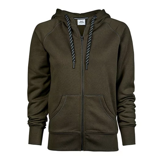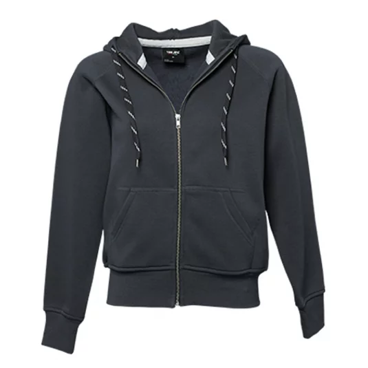 Trendige Sweat-Jacke mit Kapuze, Kordelzug in Kontrastfarbe, aufgesetzte Taschen, elastische Rippenbündchen an Ärmel und Saum, durchgehender Reissverschluss vorne, Doppelnähte