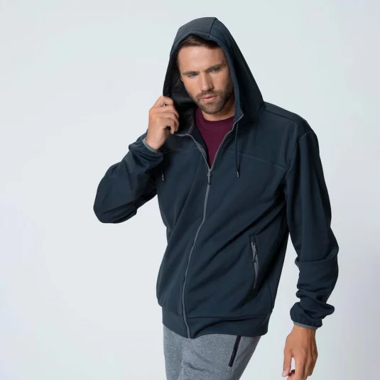 Eine schöne Kapuzenjacke aus weichem, elastischem und komfortablem Polyester.