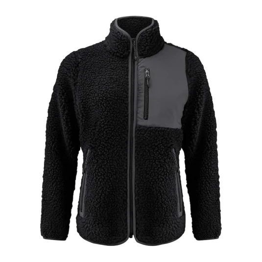 Soft and warming women's sherpa fleece jacket as an element of the layering concept.