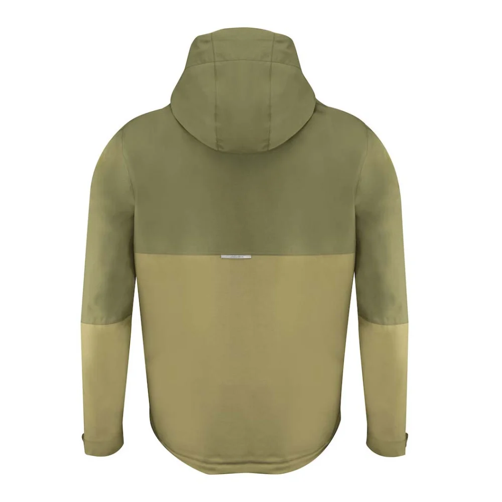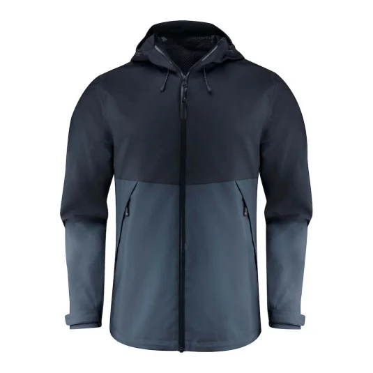 Modern waterproof men's jacket with hood as an element of the layering concept.