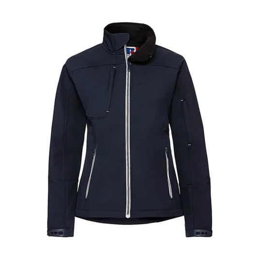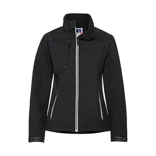 Bionic-Finish® Eco (3-layer softshell with hydrophobic membrane), fluorine and PFC free, wind and waterproof (5000 mm), breathable (5000 g/m² in 24h), stand-up collar, Hydroshell Air inserts in the underarm area, zipped chest, arm and side pockets, inner media mesh pocket, adjustable cuffs, fitted.