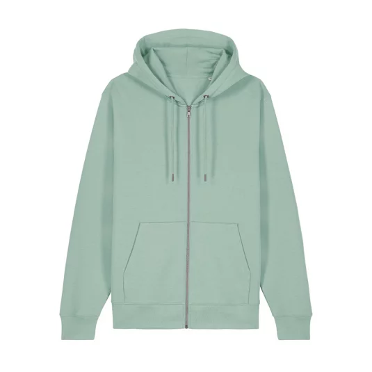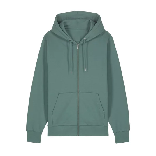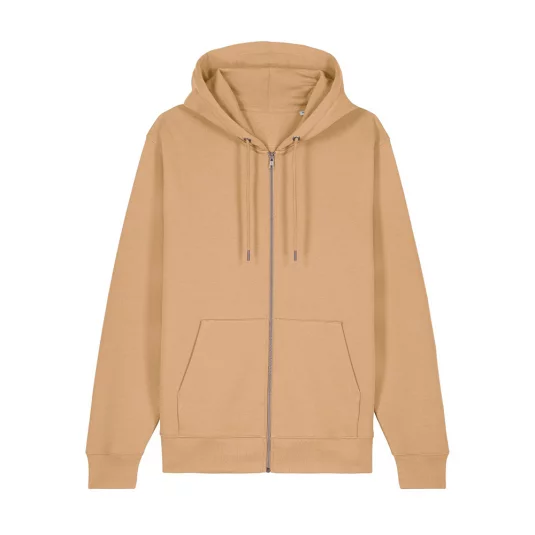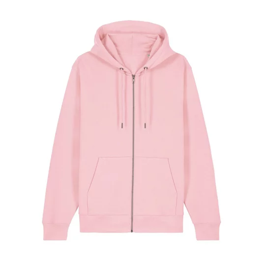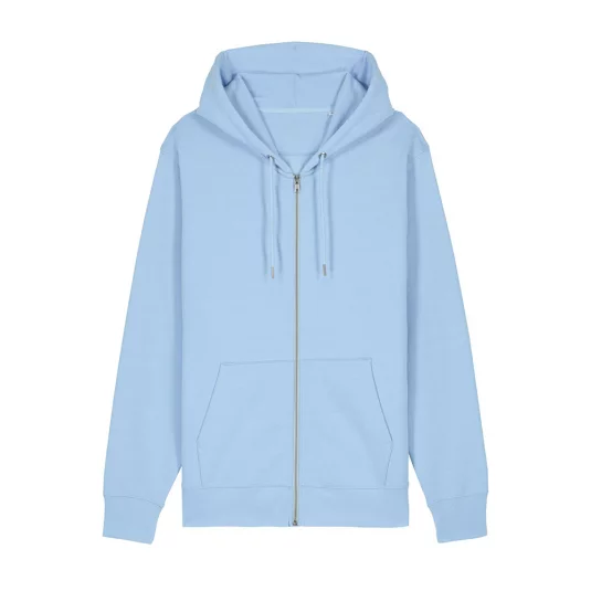 Unisex hoodie with zip, set-in sleeves and double-layer hood.