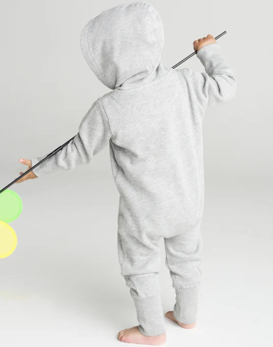 Bébé tout-en-un avec intérieur très doux et moelleux, capuche simple, sellette dans la nuque, bandeau dans le cou, zip du cou jusqu'au bas des jambes pour un habillage et une finition faciles, poche kangourou, larges bords-côtes aux poignets et aux chevilles, facile à réétiqueter.