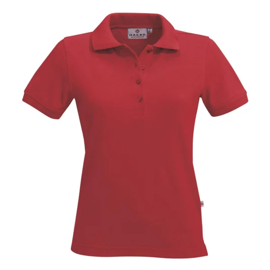 Polo à la mode avec patte de boutonnage raffinée avec boutons incassables très bien cousus, ton sur ton, avec inscription HAKRO au laser.