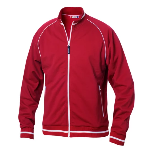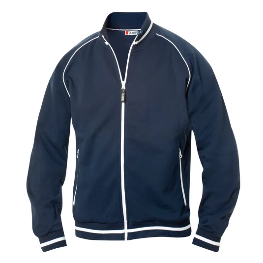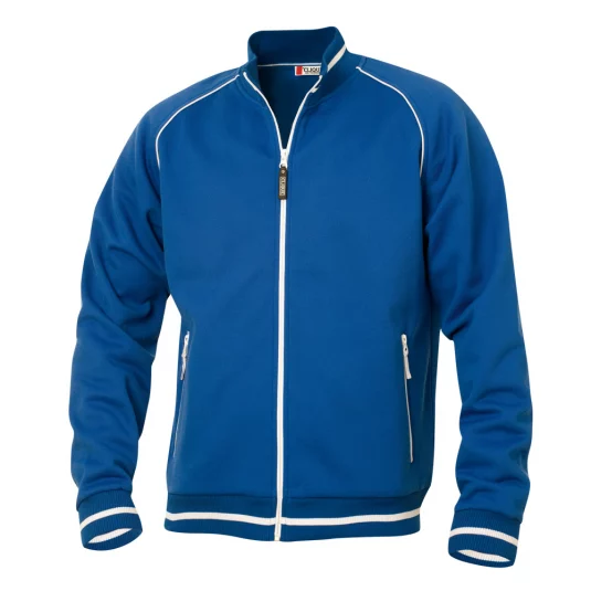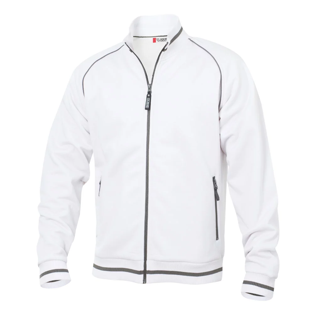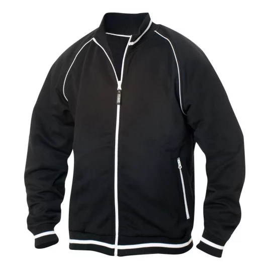 Veste unisexe avec tricot structuré, face intérieure rugueuse, bandes contrastées à l'encolure, à l'ourlet et aux manchettes, 2 poches latérales avec fermeture éclair de couleur contrastée