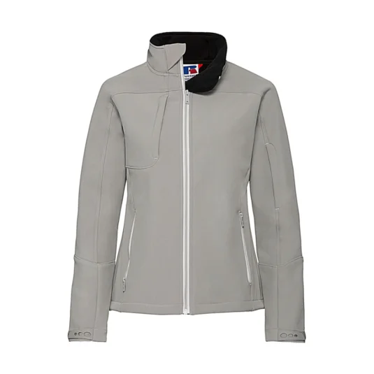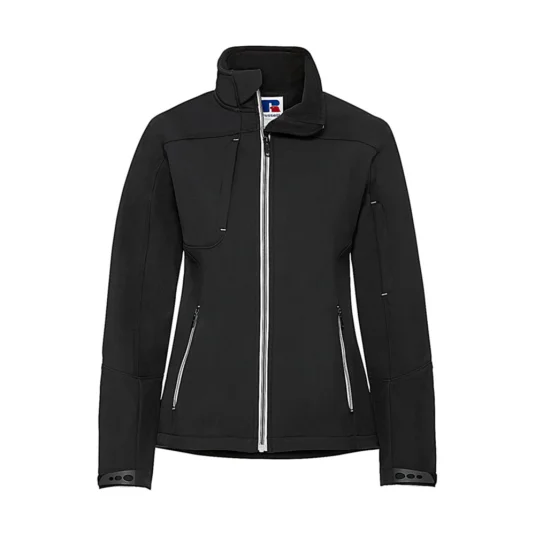 Bionic-Finish® Eco (softshell 3 couches avec membrane hydrophobe), sans fluor ni PFC, imperméable au vent et à l'eau (5000 mm), respirant (5000 g/m² en 24h), col montant, inserts Hydroshell Air sous les aisselles, poches poitrine, bras et latérales avec zip, poche média filet intérieure, poignets réglables, cintré.